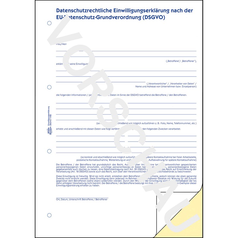 AVERY Zweckform 1782 Data Protection Declaration of Consent (Data Protection Form, According to DSGVO, DIN A4, Self-Copying, 2 x 40 Sheets) White/Yellow