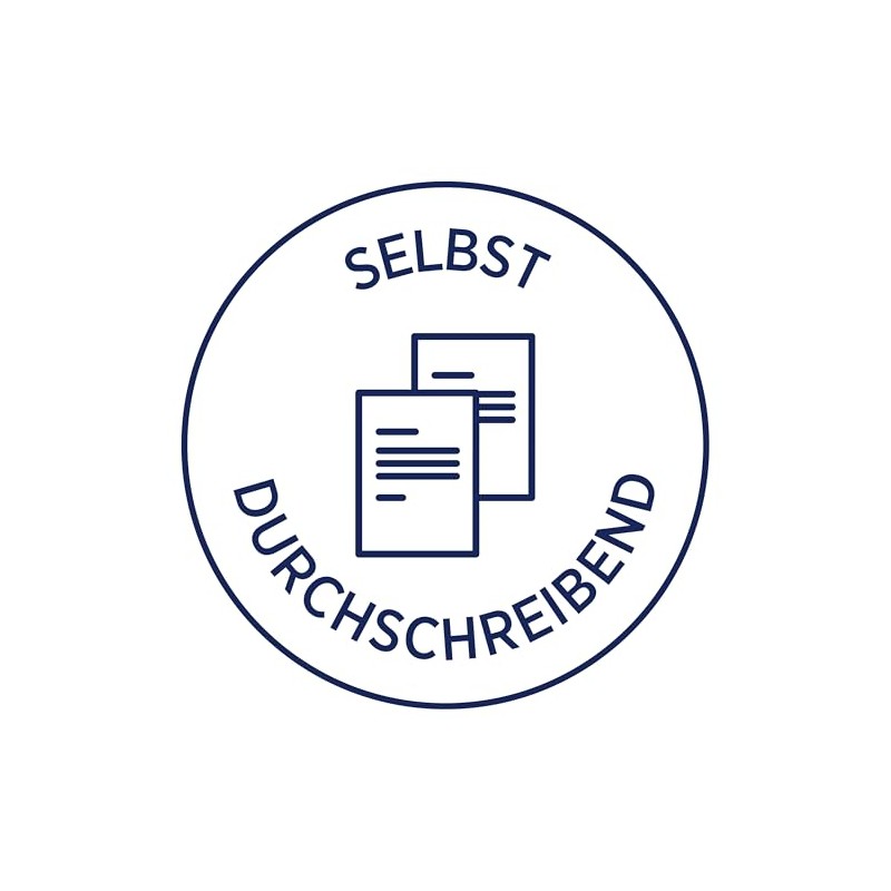 • Selbstdurchschreibend, mit hervorragender Durchschreibkraft und im Rückendeckel integrierter Schreibunterlage