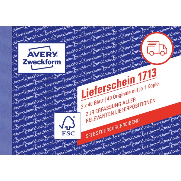 AVERY Zweckform AVERY Zweckform 1713 Lieferschein speziell für Österreich (A6 quer, 2x40 Blatt, selbstdurchschreibend mit farbigem Durchschlag, zur Erfassung aller relevanten Lieferpositionen) weiß/ gelb