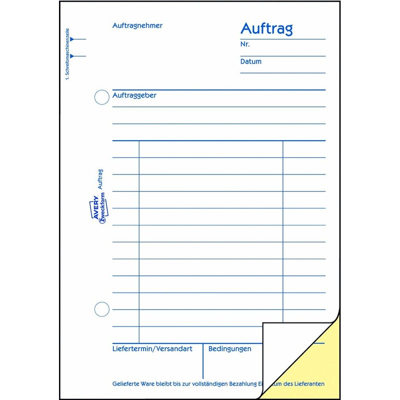 Avery Zweckform DIN A6 1727 Order, Carbonless, 2 x 40 Sheets, White, Yellow