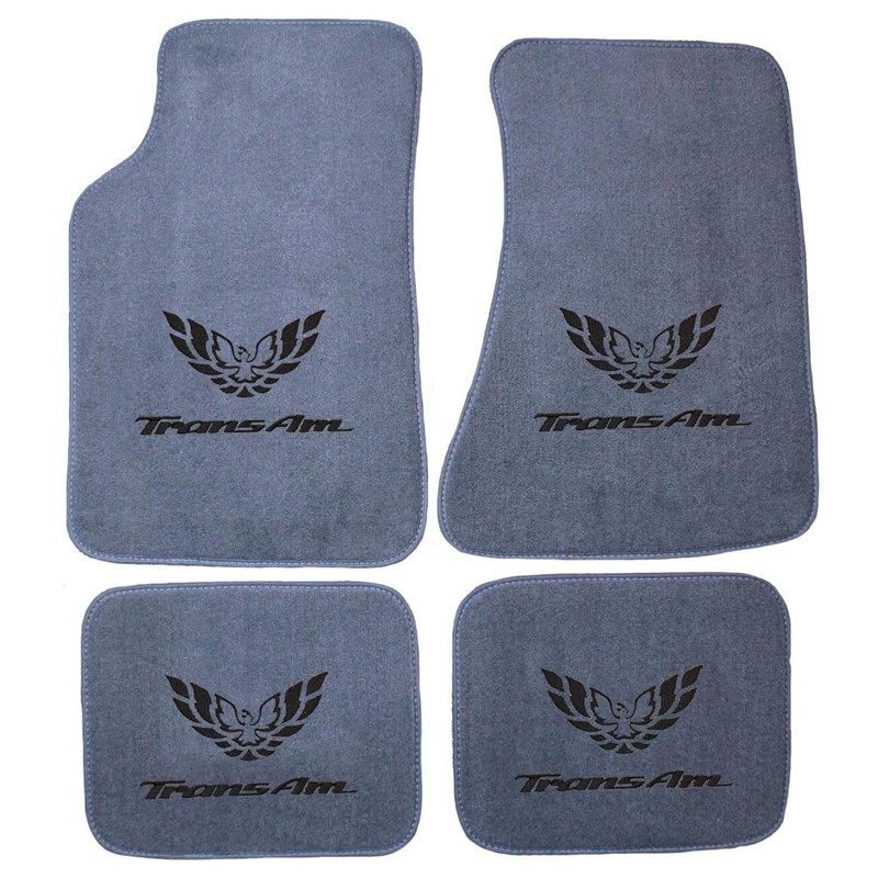 Constructed from a 18oz high-strength Polypropylene carpet, trimmed in a color coordinated edge, and comes with a Black Firebird & Trans Am logo on all 4 mats. Compatible with 1982-2002 Pontiac Firebird Trans Am.