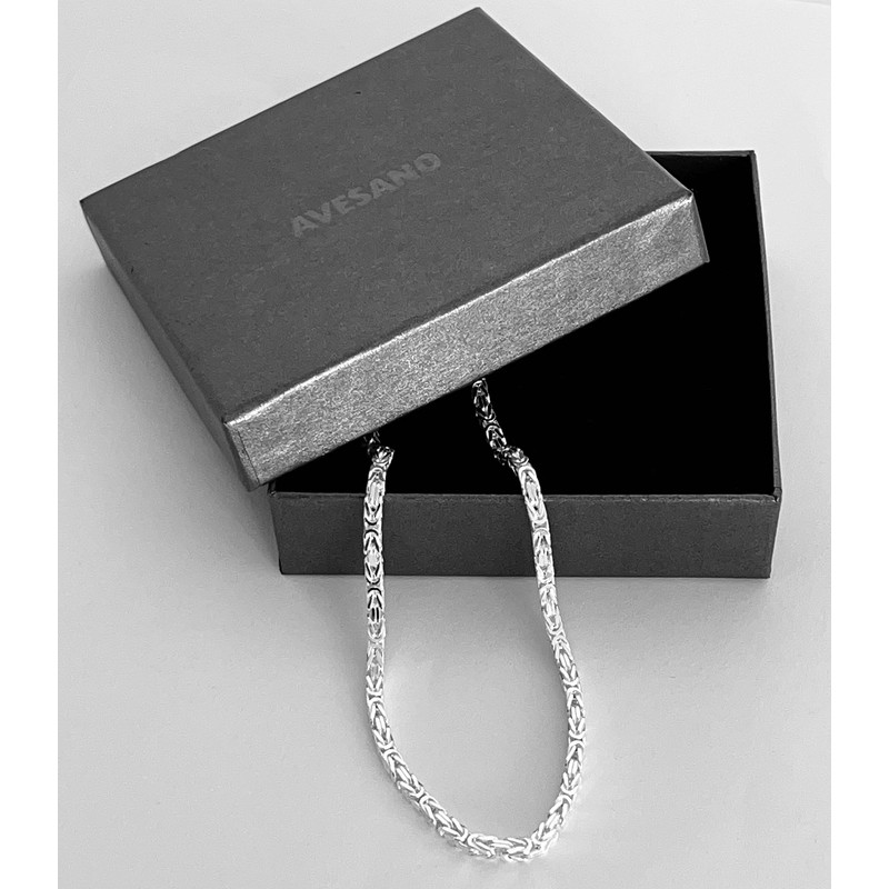 Avesano 925 Sterling Silver Byzantine Chain Men's Necklace, 3 mm Width, Real Byzantine Chain, Solid Worked with Jewellery Box, Length 45 cm - 70 cm, Model 101095-0, Sterling Silver, No Gemstone