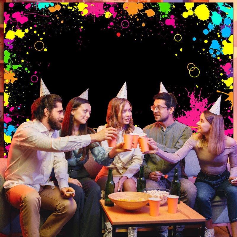 - 📸Let's Glow Splatter Backdrop -This Glow Photo Backdrop is Perfectly Used as Sleppover Birthday Party Decorations or House Dance Banner Photo Studio Photography or Wall Decors. It Will Definitely Be A Hit for Your Birthday Party Event.