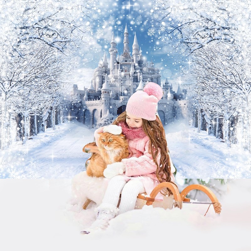 Avezano Winter Backdrops Winter Castle Scene Photo Backdrop Winter Wonderland Party Holiday Photo Studio Booth Background (7x5ft)
