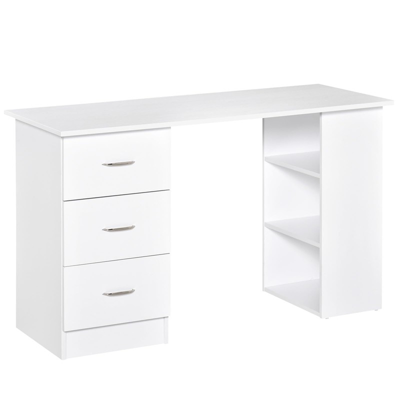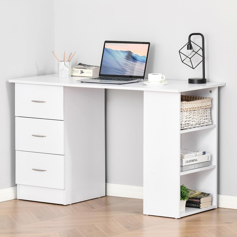 AVGVLIJ 47 inches Modern Home Office Computer Desk Bookcase Combo, Writing Table Workstation with 3 Drawer and Storage Shelf, Modern Writing Desk, Study Writing Table for Small Spaces, White