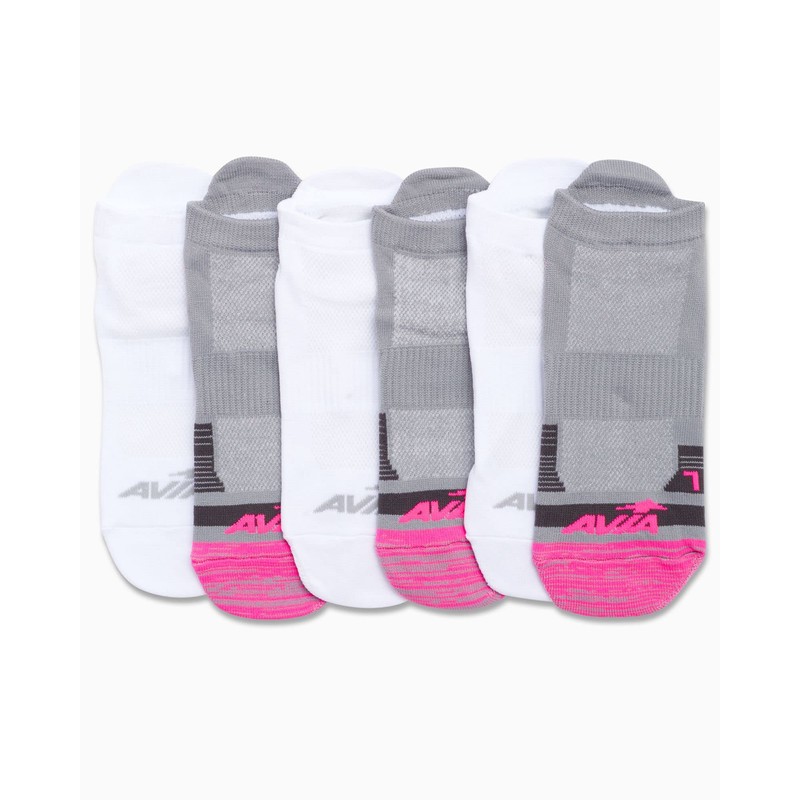 Avia Women's No Show Low Cut Running Socks (6 Pack), Size 4-9, Grey Multi Mesh
