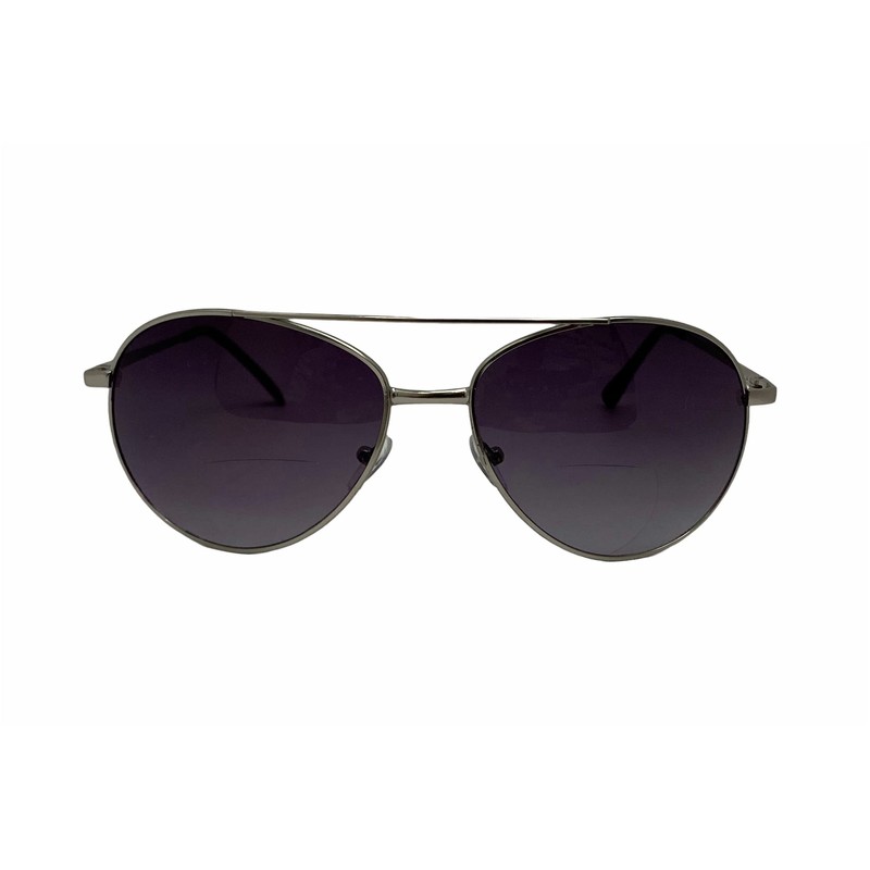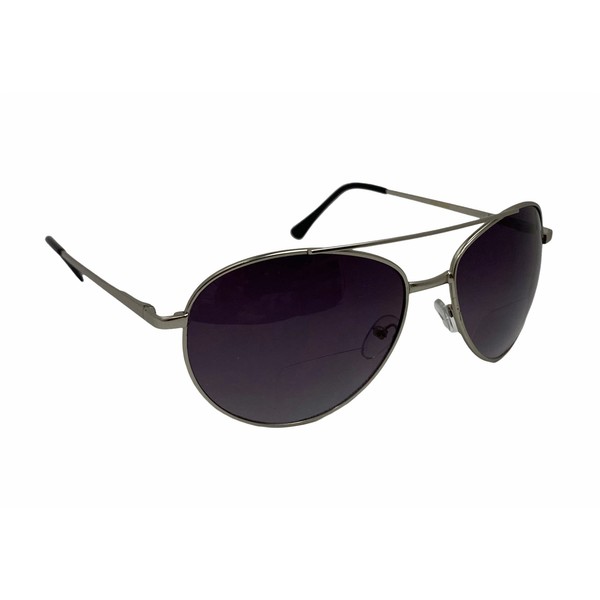aviator BIFOCAL READING SUNGLASSES gradient smoke lens 100% MAX UV400 powers +1.25 +1.50 (Silver Frame, 1.25, diopters)