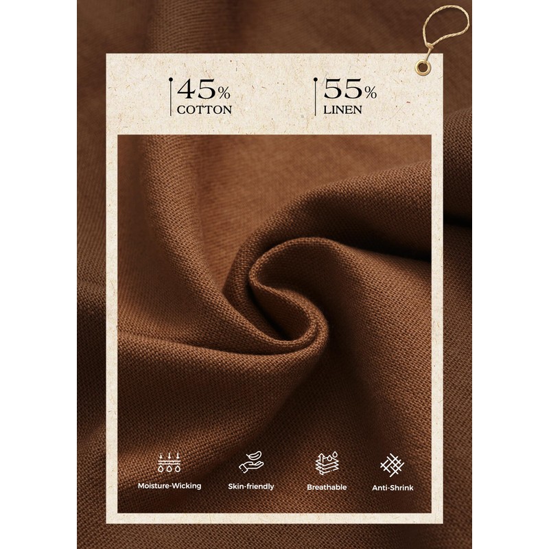 - Linen Fabric: Experience the perfect blend of comfort and style with our 55% cotton linen fabric, which wicks moisture away to keep you relaxed all day long.