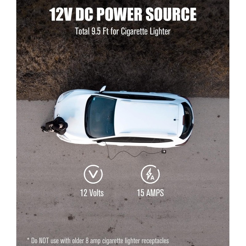 - [Tips of use 3] Designed for 12 volt DC power outlets rated 15 amps or higher—do not use with older 8 amp cigarette lighter receptacles. Ensure safe use of this 12 volt compressor