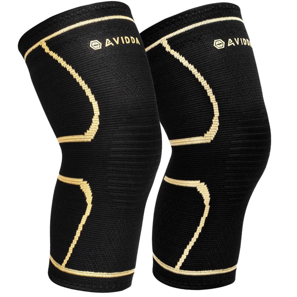 AVIDDA AVIDDA Knee Support Brace 2 Pack - Compression Knee Sleeves for Arthritis, Joint Pain, Ligament Injury, Meniscus Tear, ACL, MCL, Tendonitis, Running, Squats, Sports