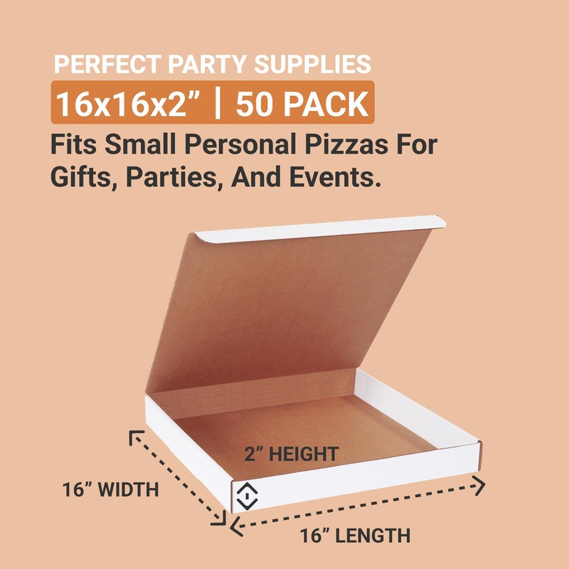 Aviditi Extra Large Pizza Boxes 16 Inch - 16" L x 16" W x 2" H, White (50-Pack) Extra Strong Quick Assembly Cardboard Boxes for Pizza, Pizza Party Supplies, Heavy Duty Food Storage Takeout Container
