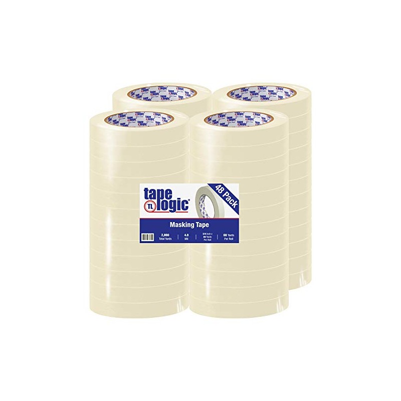 - DIMENSIONS: This bulk pack of masking tape comes with 48 rolls. Each roll measures 3/4 inch width by 60 yards length. Available in natural color.