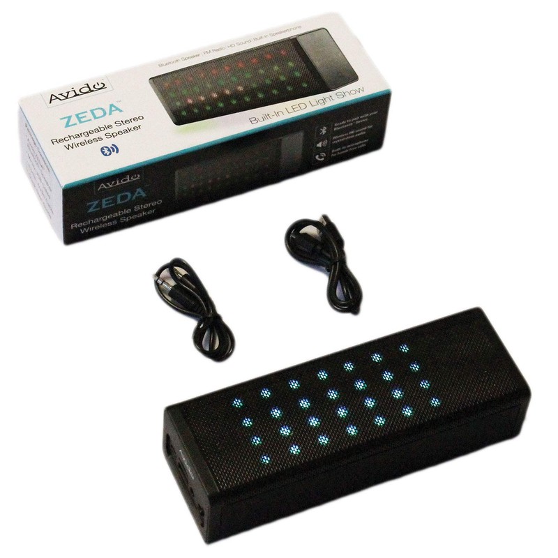 Avido ZEDA Portable LED Light Show Wireless Speaker- HD Sound, Built-in Speakerphone, FM Radio, Aux Connection, USB Mode, Micro-SD Card Input, Voice Prompts, and Rechargeable Battery