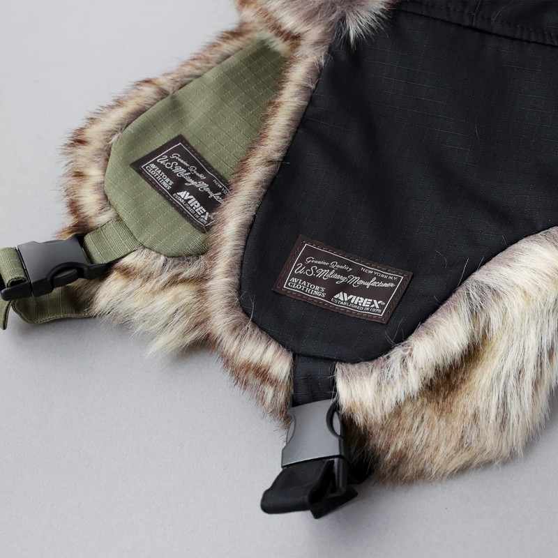 - Limited model with the traditional AVIREX logo embroidered on the reverse ear cover of the tag