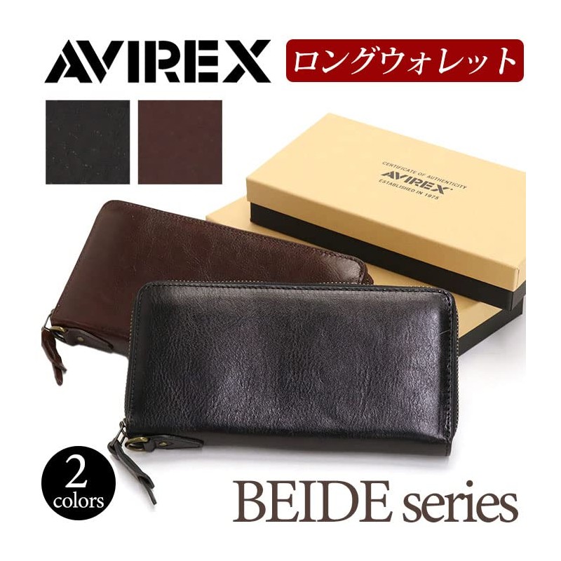 AVIREX BEIDE Bide Round Zipper Long Wallet Leather AX9102 is a series of simple wallets finished with Italian leather.
