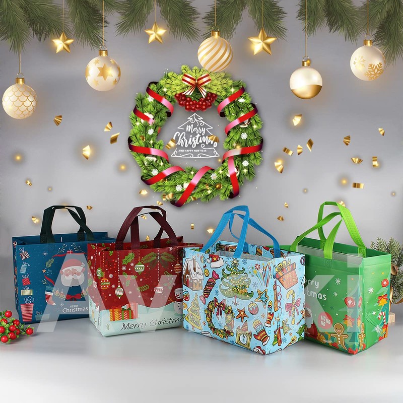 - IDEAL FOR GIFT WRAPPING DURING CHRISTMAS HOLIDAY: These Christmas Tote party bags are very suitable for most sizes of gift packaging, you can use it for Christmas parties, holiday gifts, Christmas gift packaging, Christmas decorations, wine bottle gift packaging, large gifts, friend gift bags, hospitality bags, they can hold any gift for Christmas or for kids.