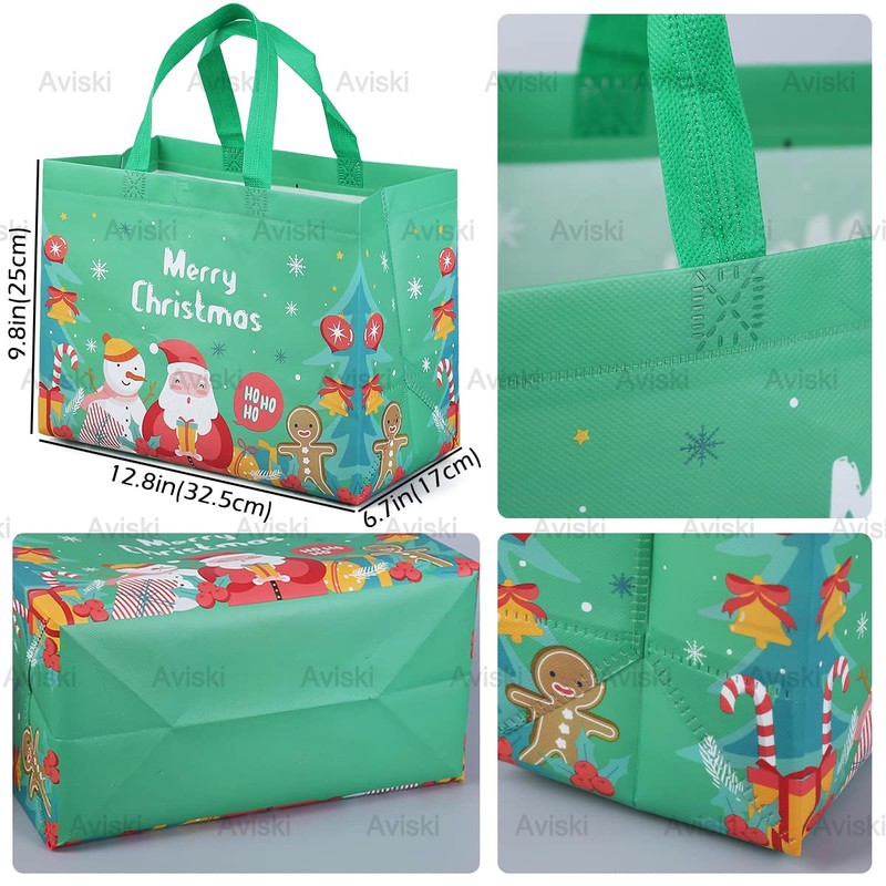 - DECENT QUALITY MATERIAL: Made of high-quality non-woven fabric. The Christmas paper bags are sturdy and durable enough, and can be used to carry gifts to reduce the risk of tearing. You can replace your smelly plastic bags with these super stylish tote bags.