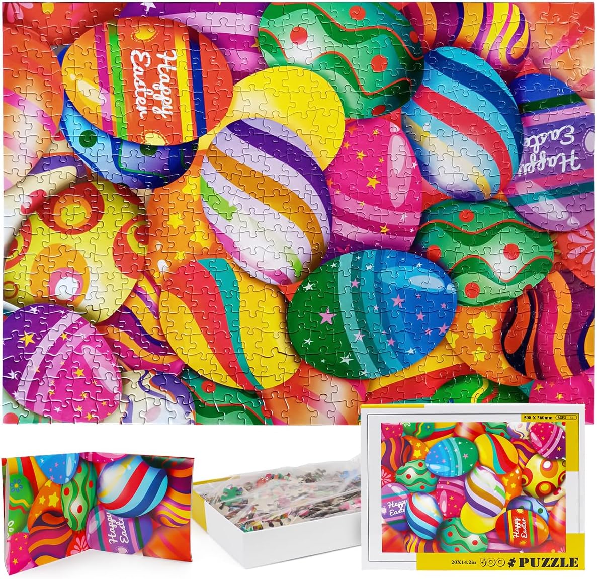 Easter Jigsaw Puzzles with 1:1 Reference Poster, Holiday Puzzles for Adults and Kids - 500 Pieces Puzzles, Egg Educational Games Gift for Elders Children Family and Friends