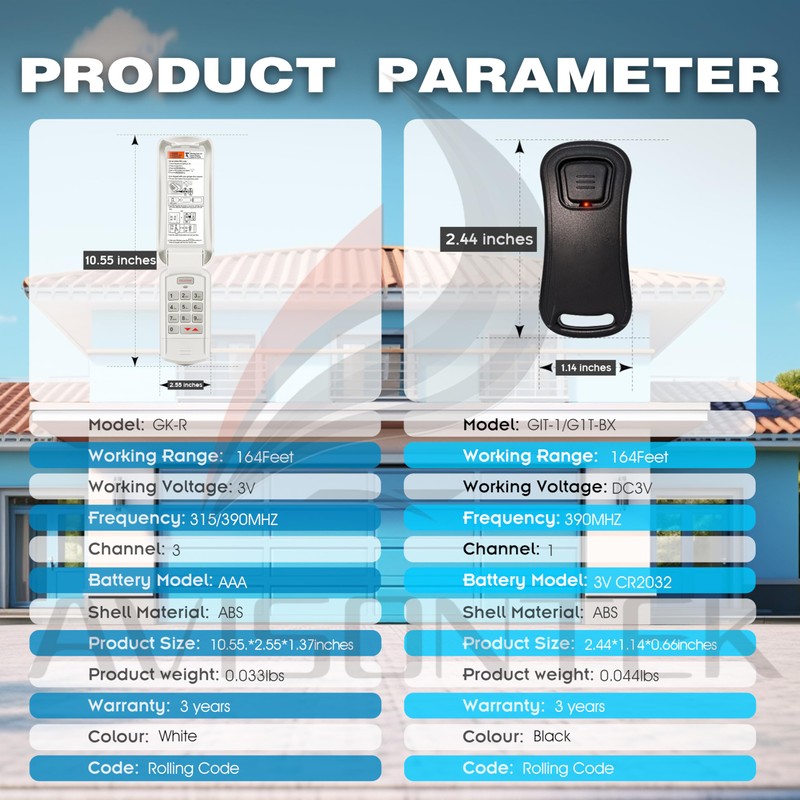 Avisontek 1 Pack GK-R Keypad + 1 Pack G1T-BX Remote Replacement for Genie Garage Door Opener - Auto-Seek 315/390MHZ, Compatible 1995 to Present Models- 3-Year Warranty