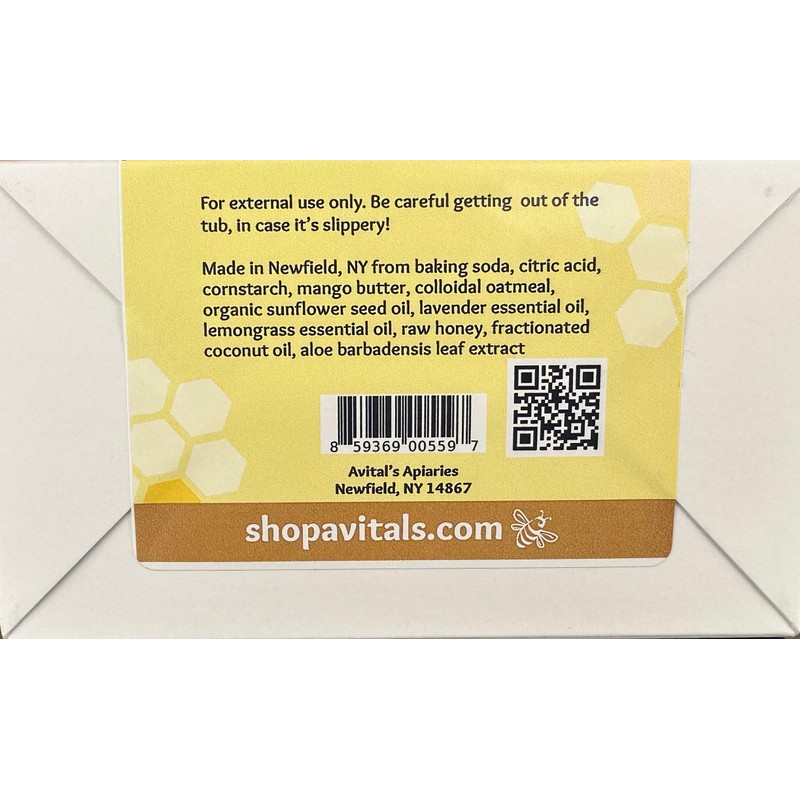 Avital's Apiaries 4 Handmade Raw Honey & Colloidal Oatmeal Bath Bombs with Lavender & Lemongrass Essential Oils to soothe hydrate dry skin