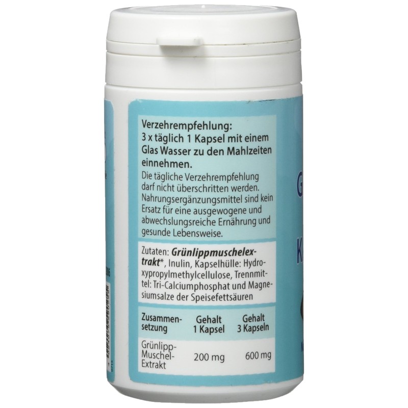 - Dietary supplement with 200 mg green-lipped mussel extract per capsule