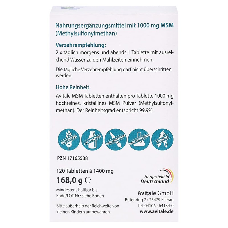 - Avitale MSM 2000 mg film-coated tablets - safety and quality. - Reliable, transparent, trustworthy!