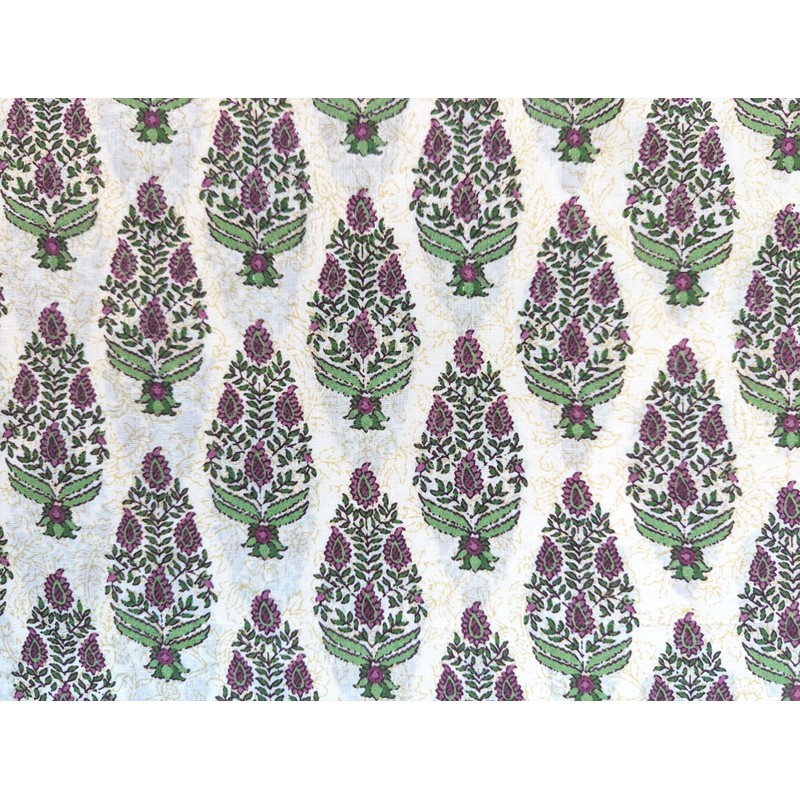 AVKA Studio Hand Block Print Fabric by The Yard - PRECUT 3 Yard 42 Inch Width - 100% Cotton Material - Beige & Purple Paisley Pattern - Light Weight Indian Cloth for Making Summer Dress Projects etc