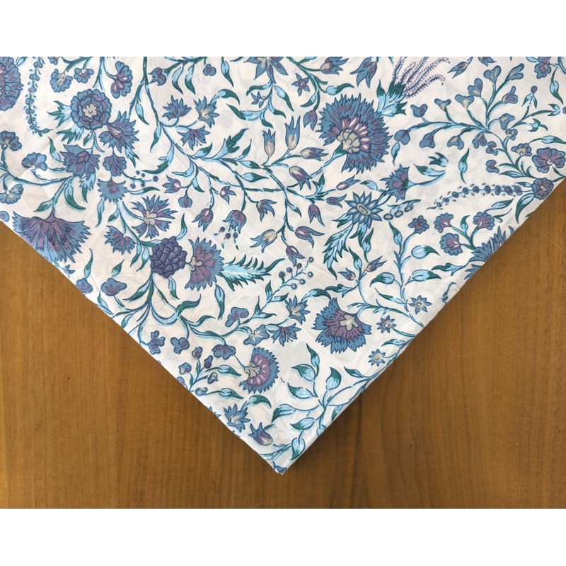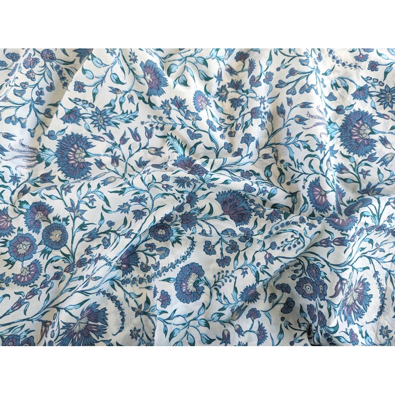 AVKA Studio Hand Block Print Fabric by The Yard - PRECUT 3 Yard 42 Inch Width - 100% Cotton Material - White with Blue & Purple Floral Pattern - Light Weight Indian Cloth for Making Summer Dress Tops