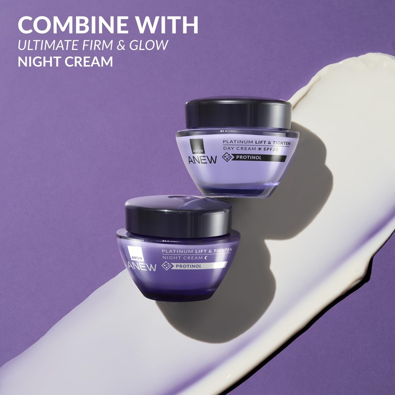 Avon Anew Platinum Lift & Tighten SPF20 Day Cream 50ml, with Protinol™ Technology to Help Lift Skin, and Replenish the Look of Skin's Firmness, Moisture and Elasticity, Cruelty Free