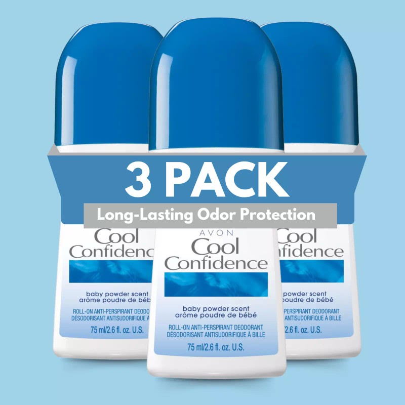 Stay fresh and confident all day with Avon Cool Confidence Roll-On Antiperspirant Deodorant. Designed for long-lasting odor and wetness protection, this quick-drying formula provides all-day freshness with a light and comforting baby powder scent. Its gentle yet effective formula glides smoothly onto the skin, offering a non-sticky and residue-free experience.