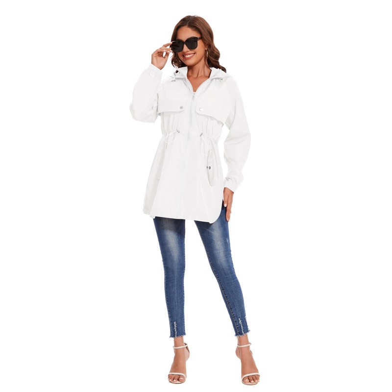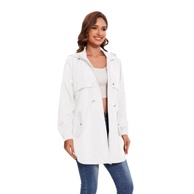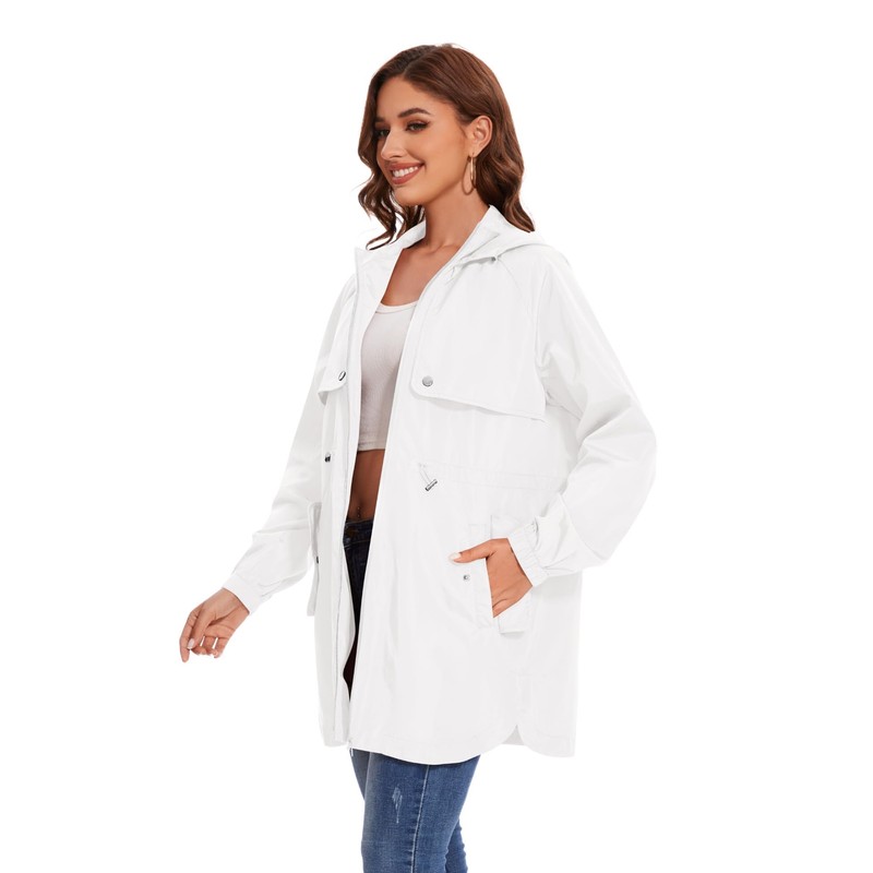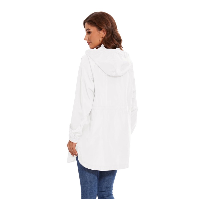 - DESIGN: This Women Rain Jacket With Attached Hood, Elastic cuffs prevent the rain drops to the cuffs; Adjustable waist,Drawstring waist that can be adjusted to make the windbreaker fit more. Suitable For All Seasons.