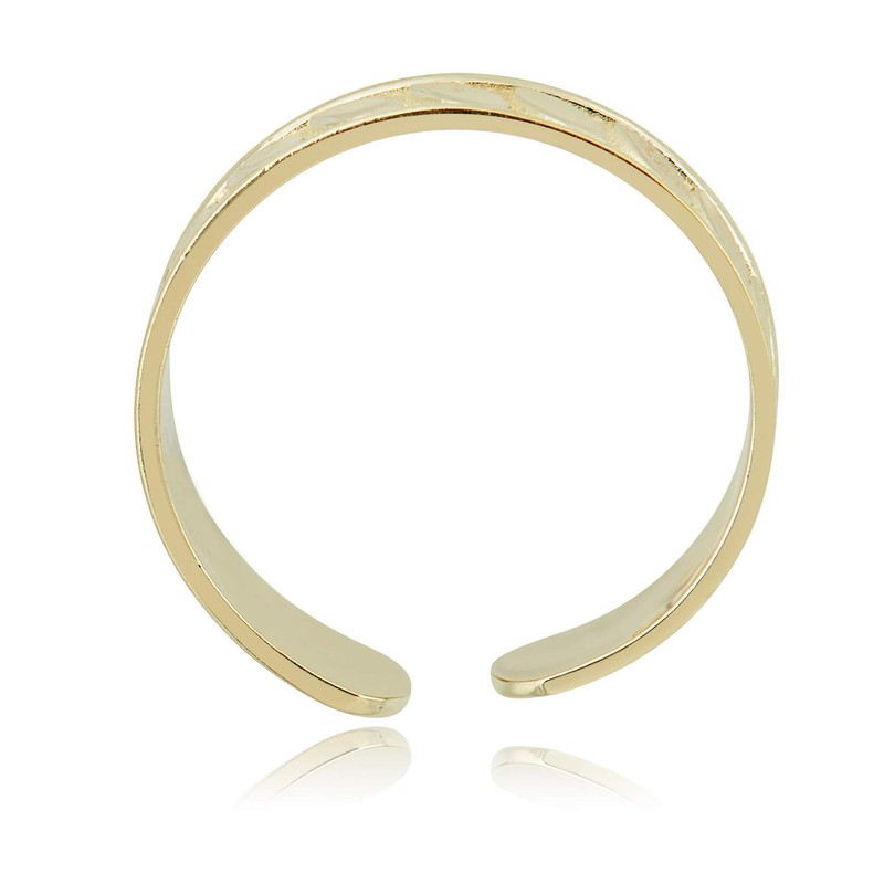 - A beautiful piece of jewelry which she will always adore, this 10K Yellow Gold toe ring features charming diamond-cut detailing. Adjustable and fits most people.