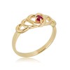 - This sweet little girl's fine jewelry will quickly become your precious one's favorite! Crafted in 10K yellow gold, this ring features a 2mm created Ruby stone which is birthstone of the month -July. Polished to a bright shine, this ring is a charming gift choice.