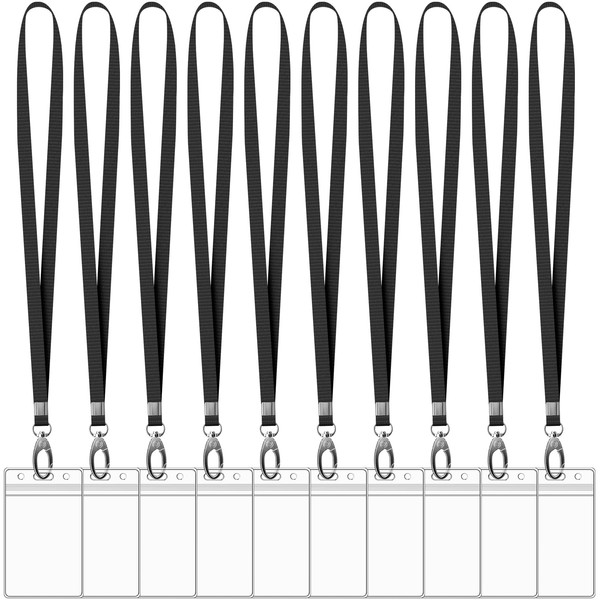 Avorast 10 Pack Vertical ID Card Name Tag Badge Holders with Lanyards, Lanyard with Waterproof Extra Thick Plastic Clear Badge Holders, Sealable Zip Card Holder for Office School Staff IDs (Black)