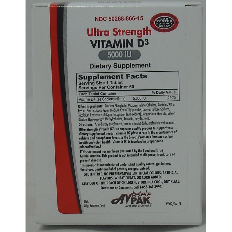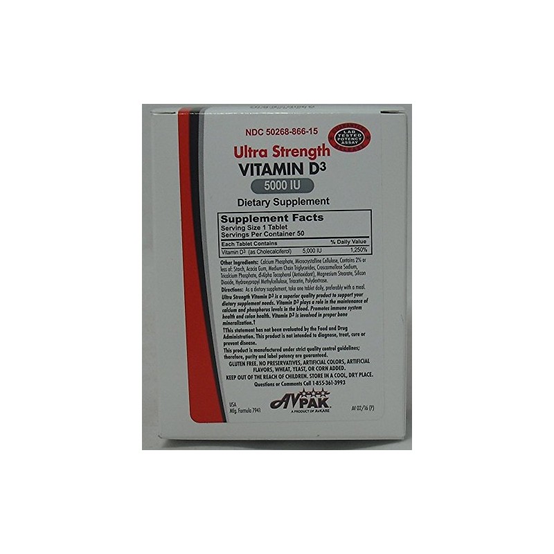 Avpak Vitamin D3 Tablets 5000IU, 50 Count