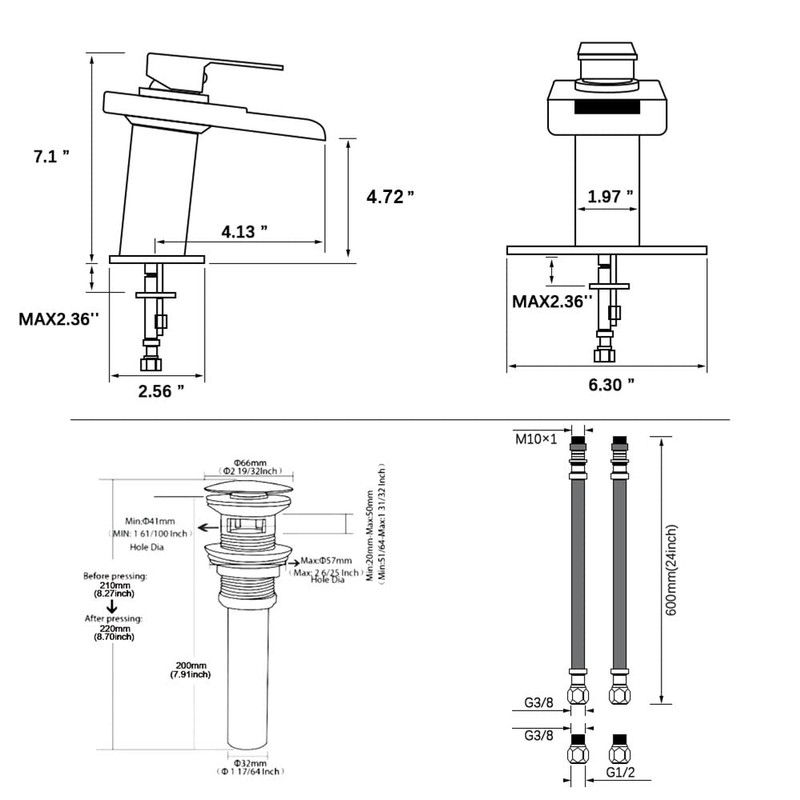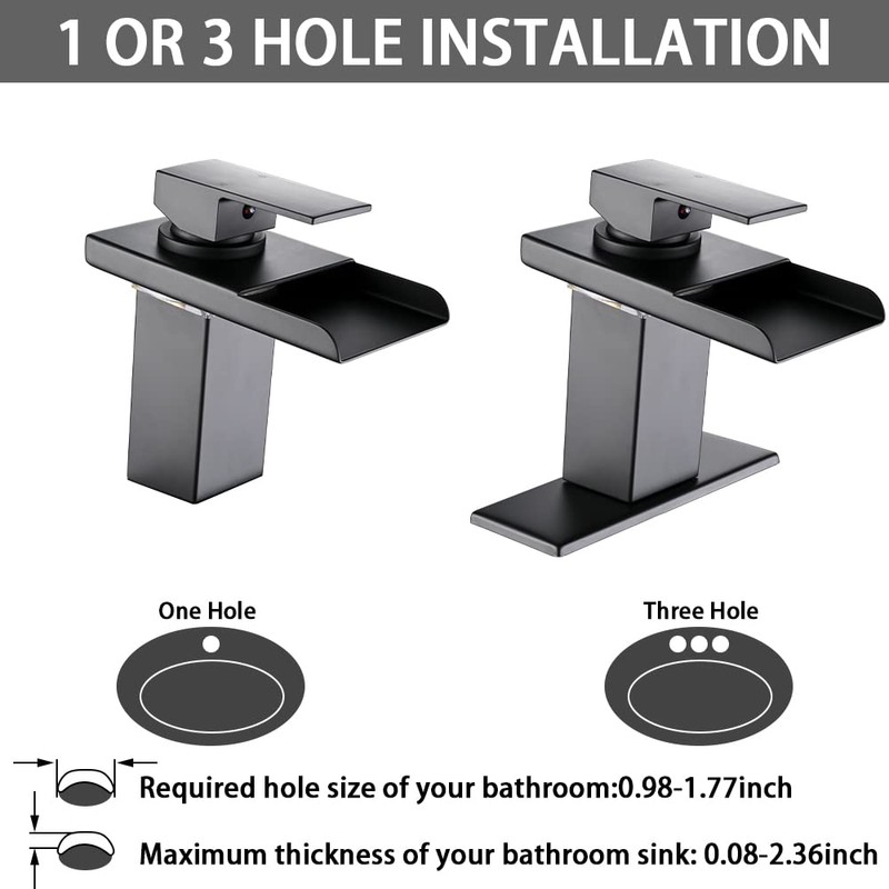 - EFFORTLESS INSTALLATION: LED faucet can be installed on one or three holes 4 inch center sink with the (included) optional 6.3" deck plate. Set-up is a breeze with this single hole installation faucet. All mounting hardware and hot/cold lines are conveniently included. The faucet is made of solid 304 stainless steel with matte black plated. Complete the look of your sink with the included pop-up drain assembly and optional deck plate.