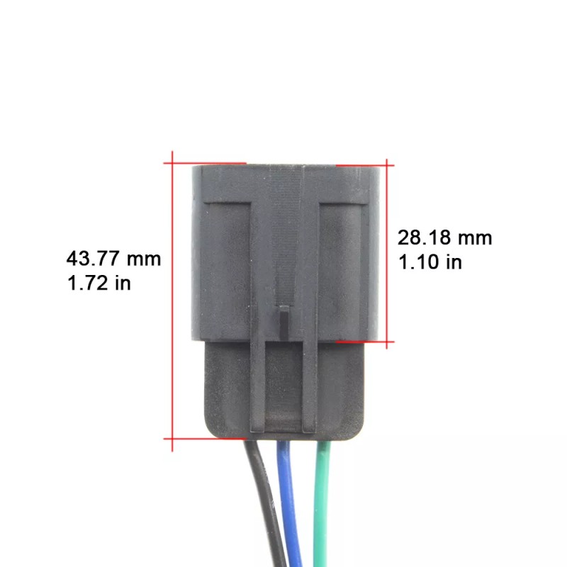 Waterproof female (socket) + male (plug) electric connector for Dodge Ram 1500 headlamps (Front). 3-PIN. Includes copper insulated wires measuring 5.5-6.5 inches (14-17 cm) in length.