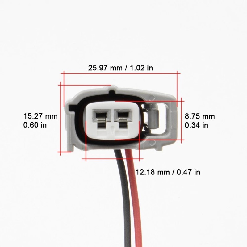 Waterproof female socket electric connector for Toyota Camry ignition knock/detonation sensor (Engine knock sensor). 2 PIN. Includes copper insulated wires measuring 5.5-6.5 inches (14-17 cm) in length.