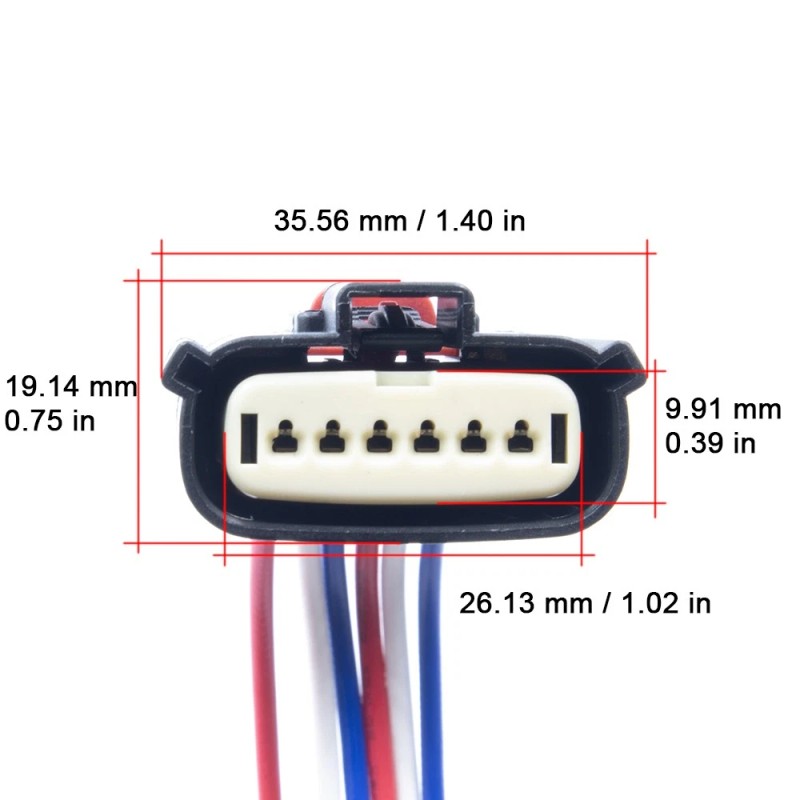 Waterproof female socket electric connector with wires for Molex. 6-PIN. Includes copper insulated wires measuring 7.8 inches (20 cm) in length.