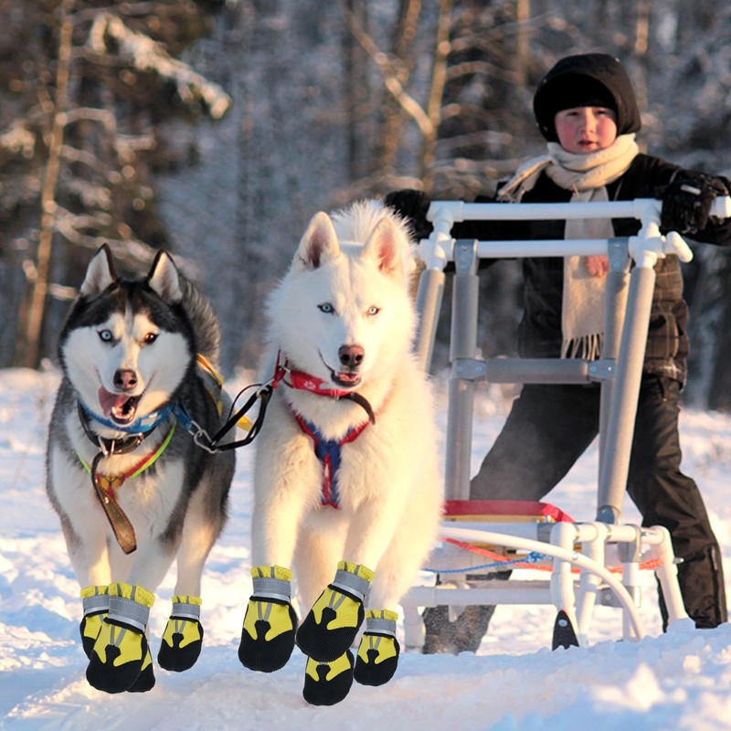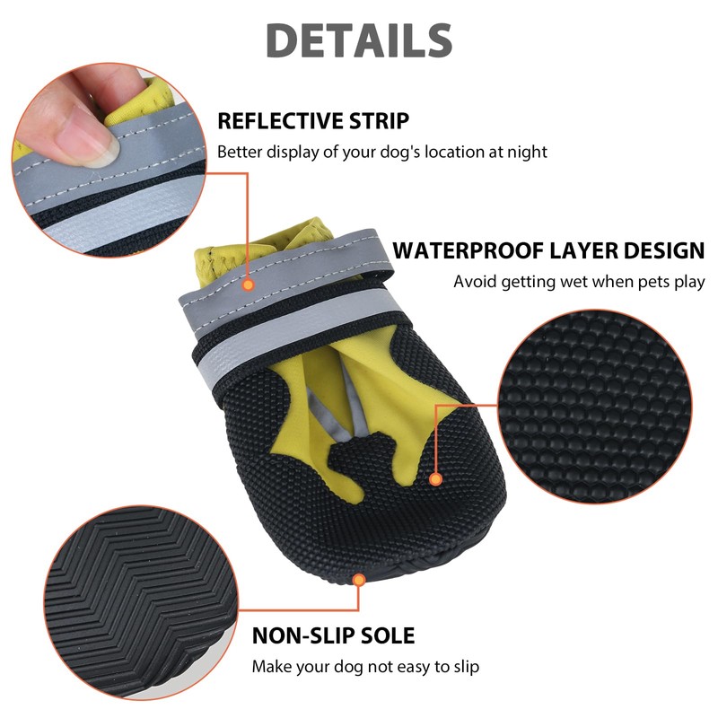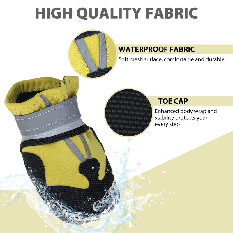Avvrel Dog Shoes, Pack of 4 Paw Protection, Dog Boots, Non-Slip Waterproof Dog Shoes with Adjustable Reflective Strap, Outdoor Dog Shoes for Small, Medium, Large Dogs (XXL, Yellow)