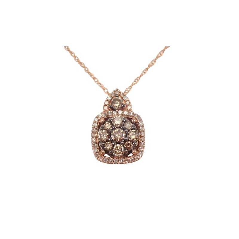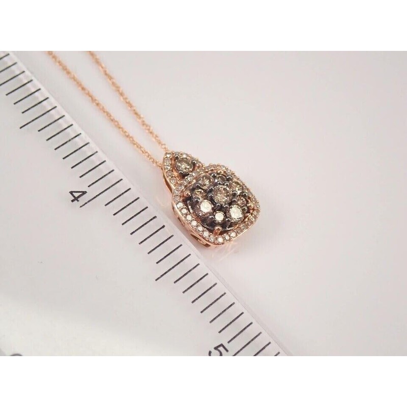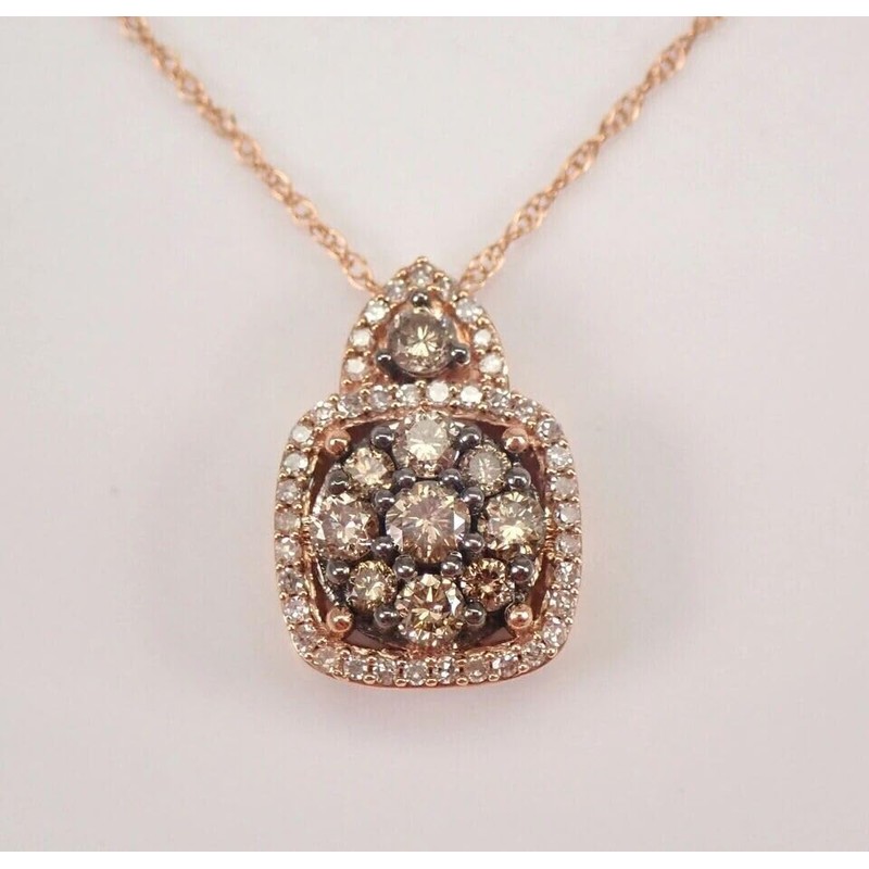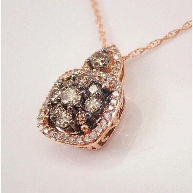 - 14K Rose Gold Plating: The pendant and chain are crafted from 925 sterling silver and plated with 14K rose gold, offering a warm and romantic tone that complements the chocolate and white diamonds beautifully.