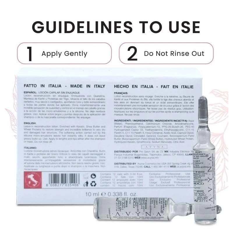 Avyna Keratin Ampoules - LOZIONE DI CHERATINA Ker(12 VIALES X 10 ML)