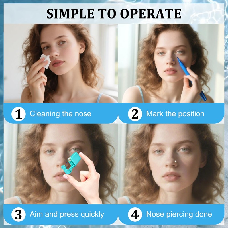 - Easy to use - This nose piercing kit is designed for maximum ease of use. Simply wash hands, clean the nose with the included cleaning pads, mark the desired piercing point, put on the gun, press the trigger - done! An effortless solution for professional piercings at home.