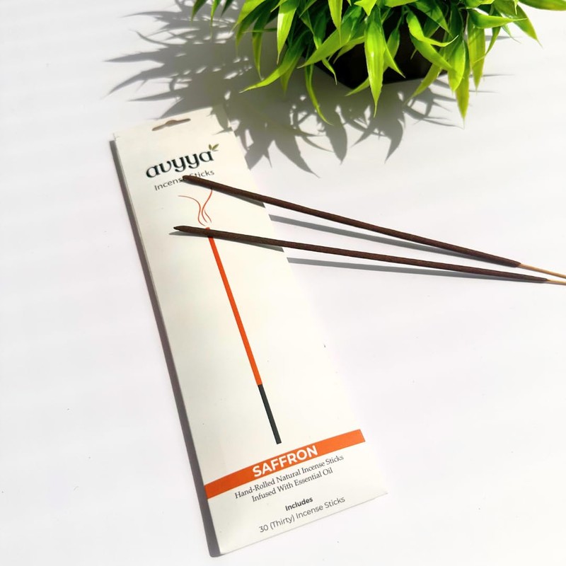 Avyya Hand Rolled Incense Sticks, Charcoal-Free, Recycled Flowers โ Perfect for Positivity, Aromatherapy, Healing, Yoga, Meditation, Relaxation and Spiritual Vibe. (30, Saffron)