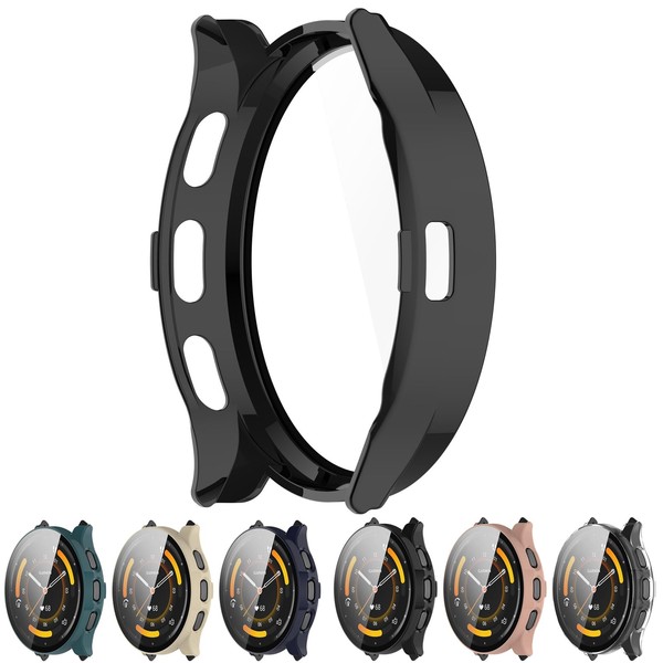 AWADUO Smartwatch Full Coverage PC Protective Case Cover with Tempered Glass Screen Protector Compatible with Garmin Venu 3S, Soft and Durable(Black)