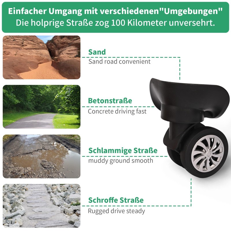 - Wide applicability: this wheel set is suitable for suitcases, trolleys etc., with the characteristics of light weight, thermal insulation, easy to use, etc., these are ideal replacement tyres for your luggage