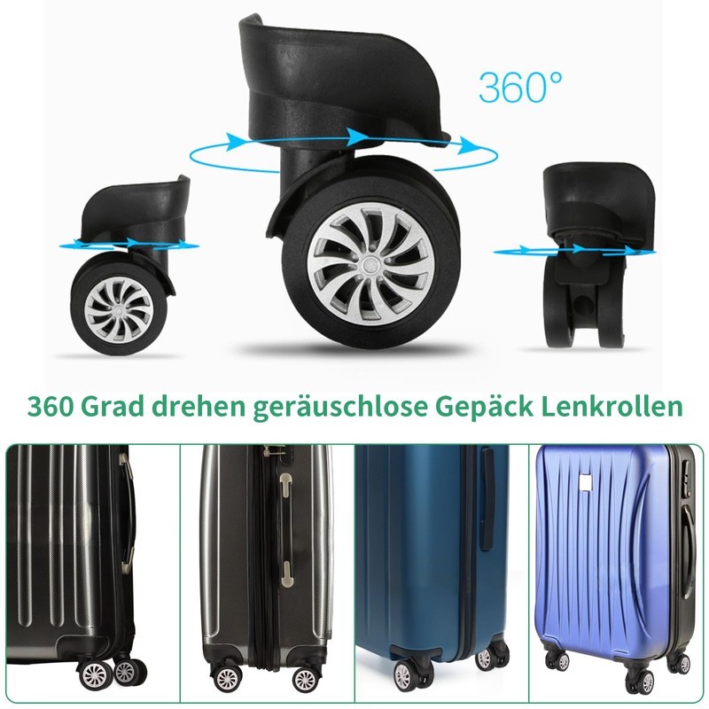 awagas Set of 4 Suitcase Wheel Replacement, Luggage Swivel Castor Universal A19 Mute Double Row Wheels 360 Degree Rotating Luggage Wheels for Trolley Suitcase Luggage Suitcase Hard Case, black, Not
