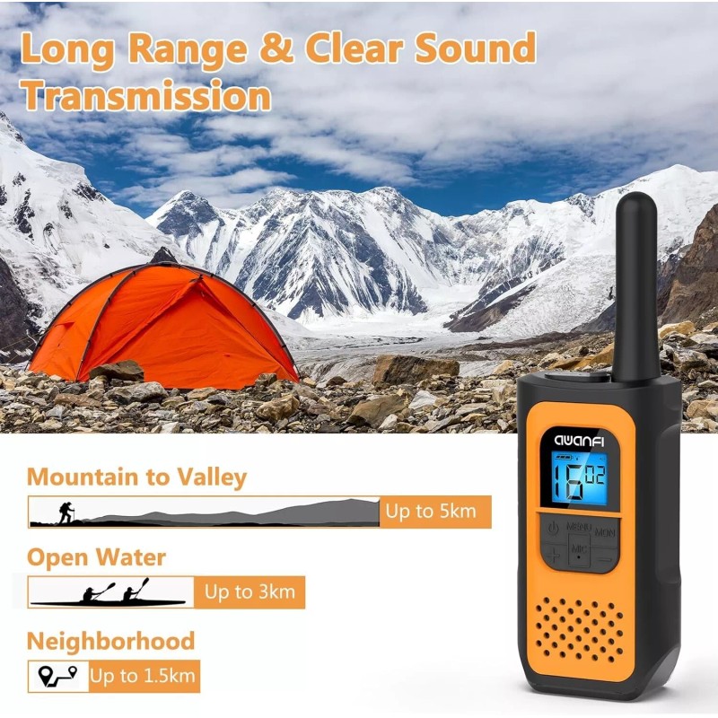 AWANFI 22 Channels Walkie Talkie Long Range with Li-ion Battery,USB-C Cable V...