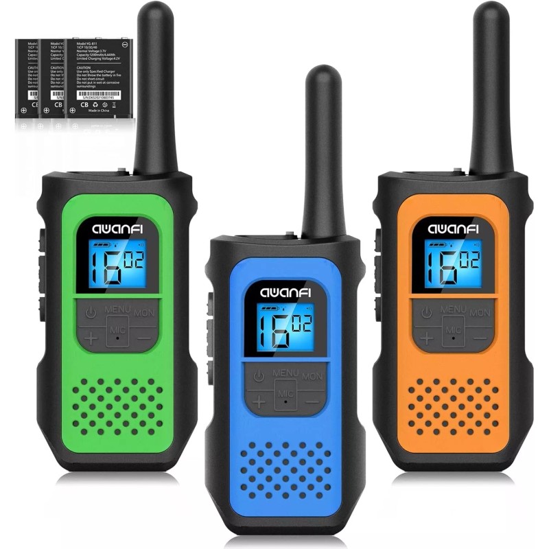 AWANFI 22 Channels Walkie Talkie Long Range with Li-ion Battery,USB-C Cable VOX - 1*Yellow+1*Pink+1*Purple