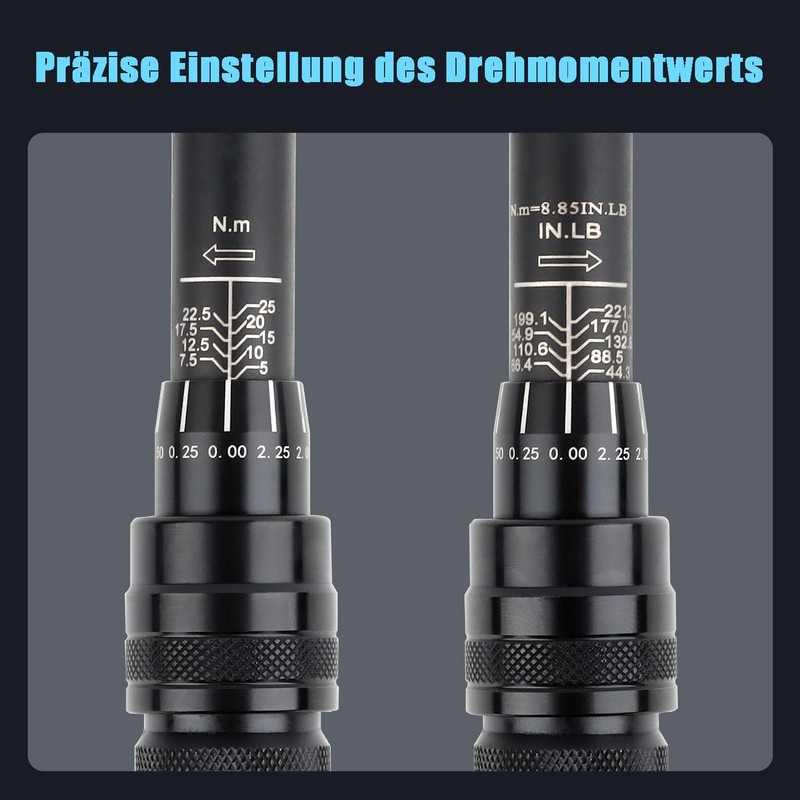 - 【5-25Nm】Calibration range: 5-25Nm With clear double laser reading scales on the handle. In addition, each torque wrench set has been fully calibrated before shipping, recalibration is not required. Accuracy ±3%